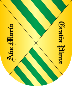 letras de sable: "Ave", en el segundo cuartel, y "María"