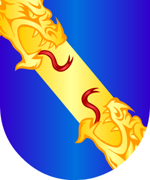En campo de oro, dos lobos de sable, andantes y puestos en palo; bordura de gules, con seis bezantes de oro. (Ref.: ATIENZA), (ref.: GONZALEZ-DORIA), (ref.: CADENAS). |