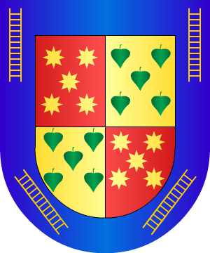 Castellano. De Casarrubios del Monte, partido judicial de Illescas (Toledo). Escudo cuartelado: 1.º y 4.º, en campo de gules, cinco estrellas de oro puestas en sotuer, y 2.º y 3.º, en campo de oro cinco panelas de sinople, puestas sen sotuer. Bordura de azur, con cuatro escalas de oro. (Ref.: ATIENZA), (ref.: GONZALEZ-DORIA), (ref.: CADENAS), (ref.: GARCIA CARRAFA). |