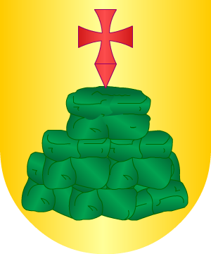 En campo de azur, una banda de tres piezas, de gules (contra las leyes heráldicas), acompañada de dos castillos de plata, uno a cada lado; bordura de plata, con ocho armiños de sable. (Ref.: ATIENZA), (ref.: GONZALEZ-DORIA), (ref.: CADENAS). |