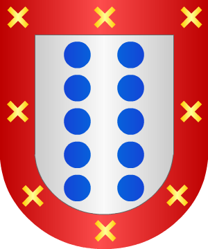 Castellano. Del Valle de Soba. Escudo partido: 1.º, en campo de sinople, un castillo de oro, aclarado de azur y bordura de gules con ocho aspas de oro, y 2.º, en campo de gules, tres estrellas de oro; cortado, también de gules, con un pedazo de muralla sobre una peña al natural. (Ref.: ATIENZA), (ref.: GONZALEZ-DORIA), (ref.: CADENAS). |