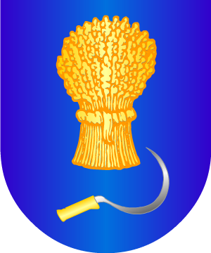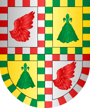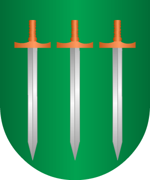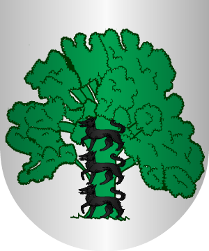 En plata, una encina, de sinople, con tres lobos atravesados a su tronco, de sable. (Ref.: CADENAS). |