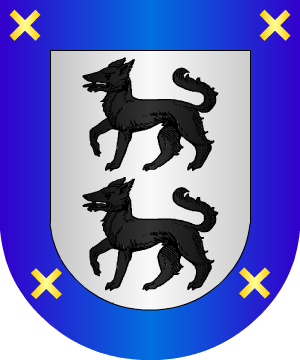 Otaola Otaolea Linaje vasco, de Éibar y Azpeitia (Guipúzcoa). Armas 1.- La casa de Éibar trae: Escudo partido, 1º de plata, un lobo de sable; y 2º de sinople, un lobo de plata; ambos lobos, empinados y afrontados, soportan un escudete brochante de oro cargado con tres panelas de azur. 2.- Los de Marquina (Vizcaya) traen: De gules, una banda de oro acompañada de dos flores de lis del mismo metal, una a cada lado. 3.- Algunos esmaltan la banda de plata o rayada de plata. 4.- Otros de Vizcaya traen: Cortado, 1º de plata, cubierta de unas redes de sable, a la derecha, un lobo de sable, y a la izquierda, un lebrel blanco manchado de sable, ambos sentados, mirándose y sosteniendo en las manos un yelmo, que está asentado sobre fajas de gules, que dividen el escudo; y 2º de gules, tres panelas de plata. 5.- Otros traen: De oro, una barra de sinople. 6.- Otros traen: De plata, dos lobos andantes, de sable, puestos en palo. Bordura de azur con cuatro aspas o cruces de San Andres de oro, una en cada cantón. |