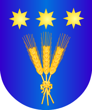 En campo de azur, unas espigas atadas, de oro; en jefe tres estrellas, de oro,