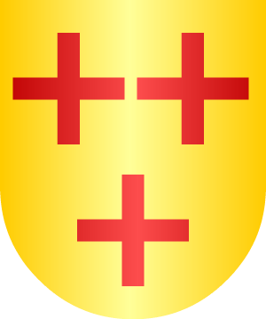 Radicado en Madrid. Traen: En oro, tres cruces, de gules, puestas dos y una. (ref.: CADENAS). |
