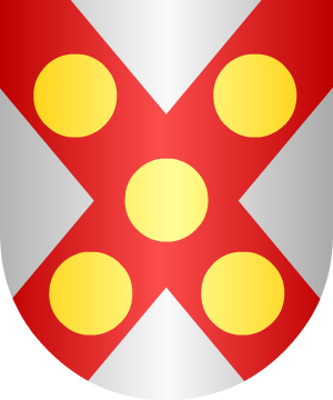 2.- La rama de Galicia acrecentó ese escudo con cuatro llaves de azur puestas entre las cuatro estrellas de los ángulos. 3.- En la casa que en la ciudad de Pontevedra mandaron reedificar en la plaza de Teucro, los Tavares-Montenegro, que mandaron reedificar Antonio Félix Tavares y Mariana Montenegro, en una piedra armera, aparecen: Cuatro estrellas, una en cada cantón. En la bordura, cuatro llaves con cuatro tréboles también en los cantones de la bordura. 4.- Los de junto a Santiago de Compostela traen: En campo de oro, una estrella de gules en forma de cruz. Así constan en varios escudos del Pazo de Castrelos. 5.- Otros: En campo de oro, cuatro estrellas de gules, una en cada cantón. Bordura de plata con cuatro llaves de azur entreveradas con cuatro tréboles de sinople situadas en los ángulos de dicha bordura. 6.- Otros: En campo de oro, cinco estrellas de gules, puestas en sotuer. Bordura de plata con cuatro tréboles de sinople entreveradas con llaves de azur situadas en los ángulos de dicha bordura. 7.- Los radicados en Porriño (Pontevedra), según Vicente de Cadenas, usan: En oro, dos leones, de gules, afrontados y sosteniendo una espada, con una bandera en su punta. 8.- En la casa de los Marqueses de Salvatierra, de Ronda (Málaga), constan en una piedra armera: Un sotuer a todo trance, cargado de cinco bezantes. 9.- Los originarios de Túnez, radicados en Madrid, según Vicente de Cadenas, usan: En campo de plata, tres peras, de sinople, mal ordenadas. Información de estos linajes por cortesía de blasonari.net |