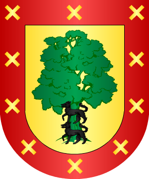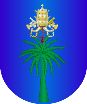 4.- En la ejecutoria del año 1776, aparece ese escudo modificado y descrito así: "Un escudito, y en él, un árbol, que parece palma, y sobre éste, o cruzándole, a manera que salen del mismo escudito dos llaves cruzadas, y sobre éstas, una Tiara Pontificia".