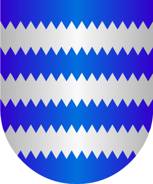 la de en medio más alta, adjurado de azur, mazonado de sable, y surmontado